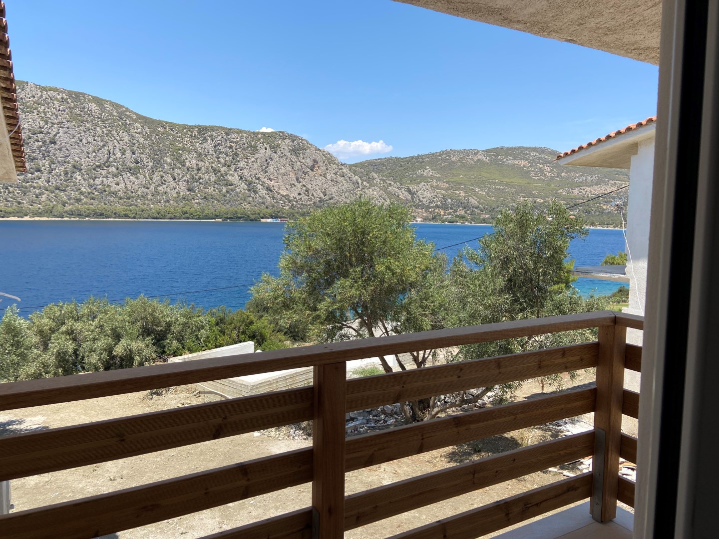 A 38 sq meters sea front apartment on the first floor in the Agrambeli complex. Tastefully renovated in 2024. Bedroom with sea view, balcony and a queen size bed. Bathroom with modern shower. Living area with large sofa (can sleep one person) and open air kitchen with appliances. Two AC units, Two TVs, Wi-Fi.
